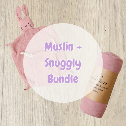 Purchase the Bear & Moo Muslin Swaddle Blanket and Snuggly Comforter together and save! Our...