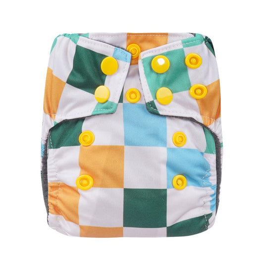 Bear & Moo Large Nappies have adjustable domes so that this reusable cloth nappy can...
