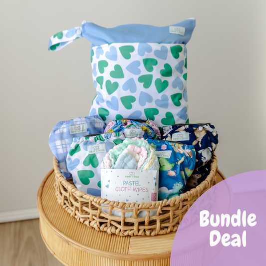 Our bundles make saving on reusable Bear & Moo products easy! The Training Nappy Bundle lets you choose six...