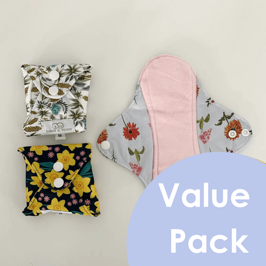 Our bundles make saving on reusable Bear & Moo products easy! The Mixed Reusable Sanitary Pad Bundle...