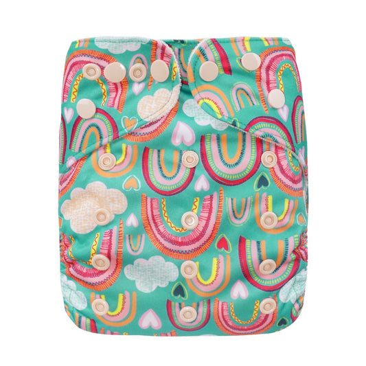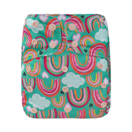 Shop our range of reusable cloth nappies in a range of styles and sizes. Featuring Bamboo & Suede cloth with washable microfibre, bamboo and hemp inserts. Available in a range of prints with matching waterproof wet bags and nappy pods, reusable breast pads, bibs and change mats.
