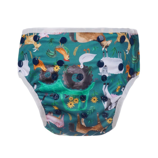 Bear & Moo Swim Nappies have adjustable domes so one size fits most (OSFM), from 3.5kg...