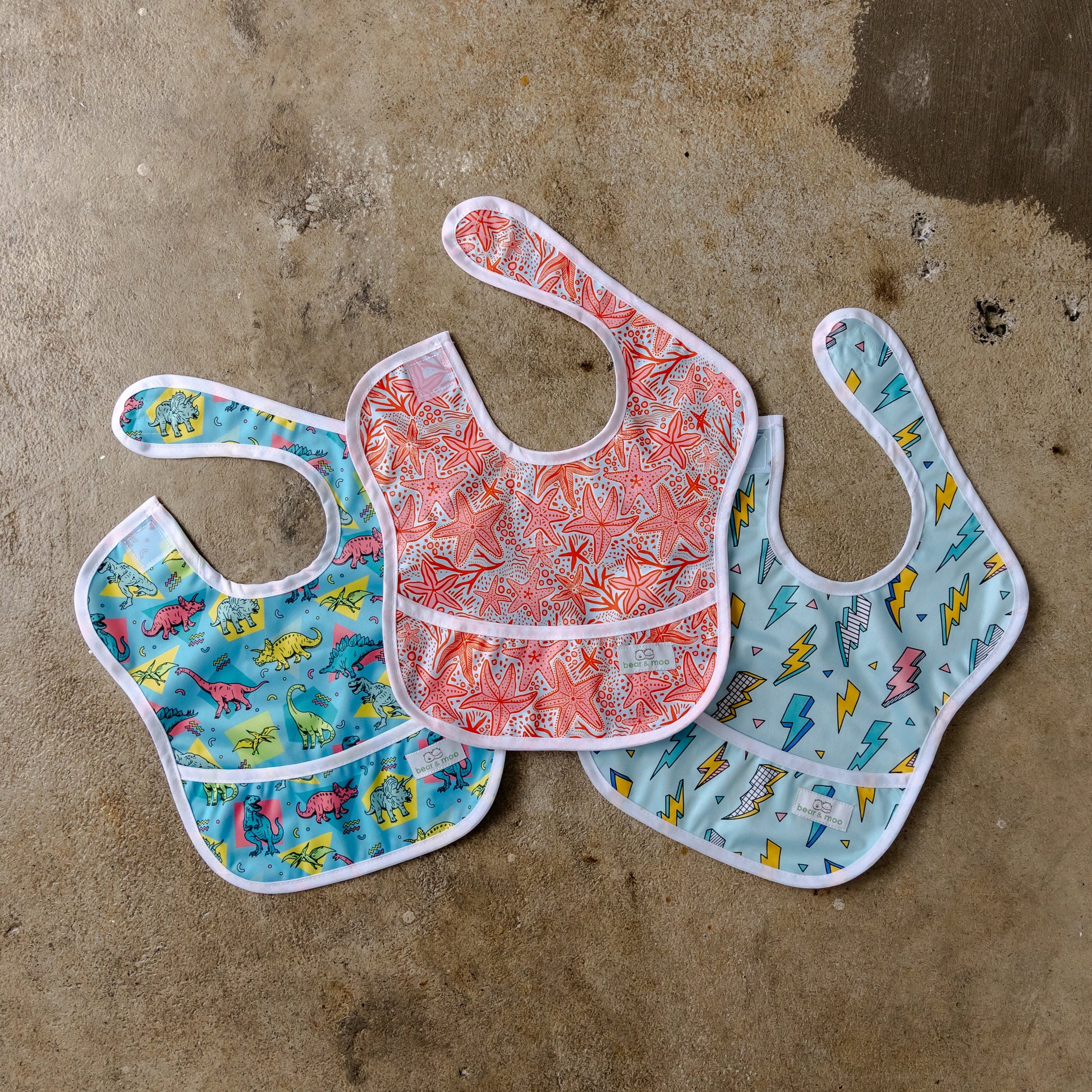 Protect their outfits while eating, playing (& drooling!) with our Classic Bibs.