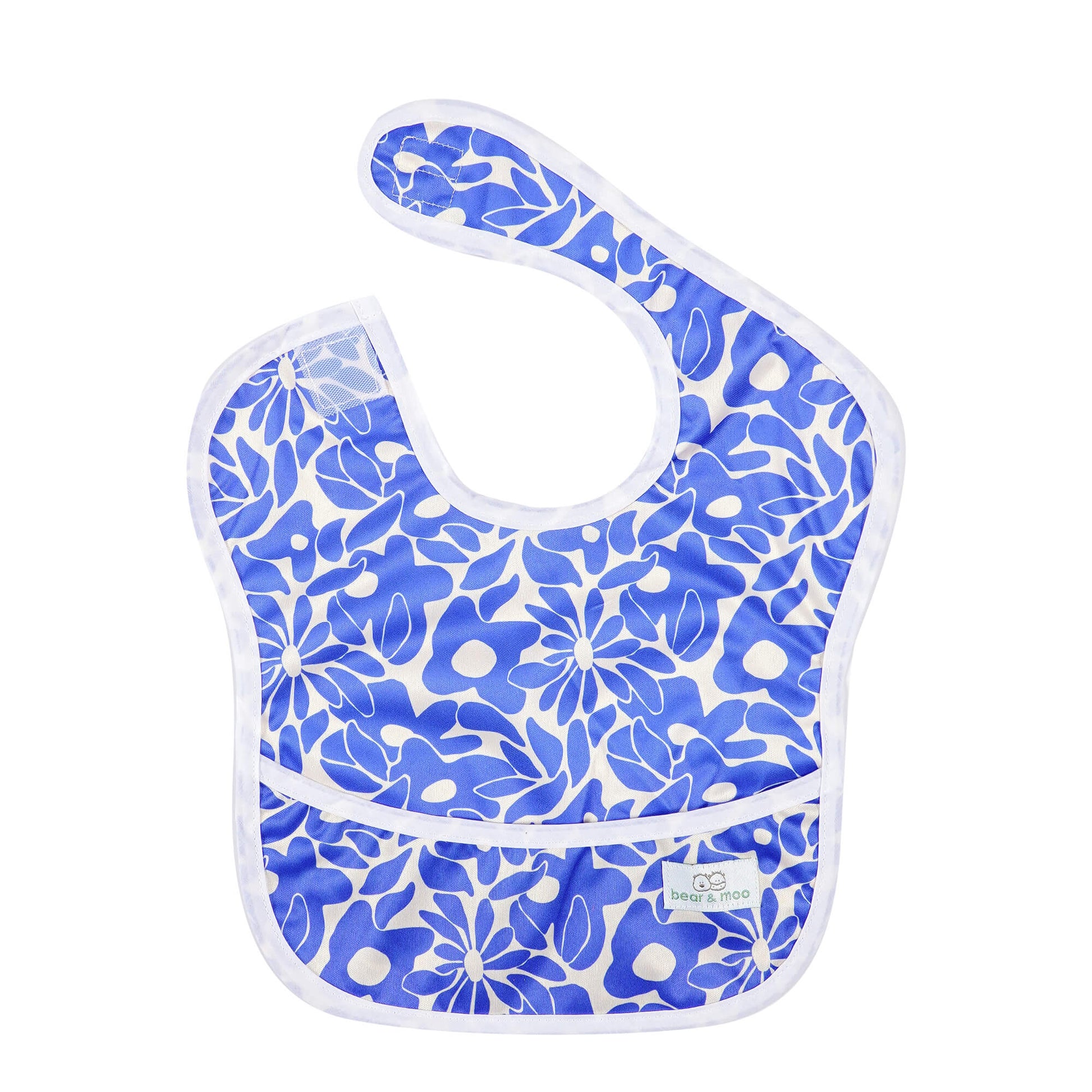 Bear & Moo Classic Bibs are in the same wipeable material as our Sleeved Bibs but in a traditional style. Velcro fastening at the back for quick closing and a pocket at the front for catching mess.