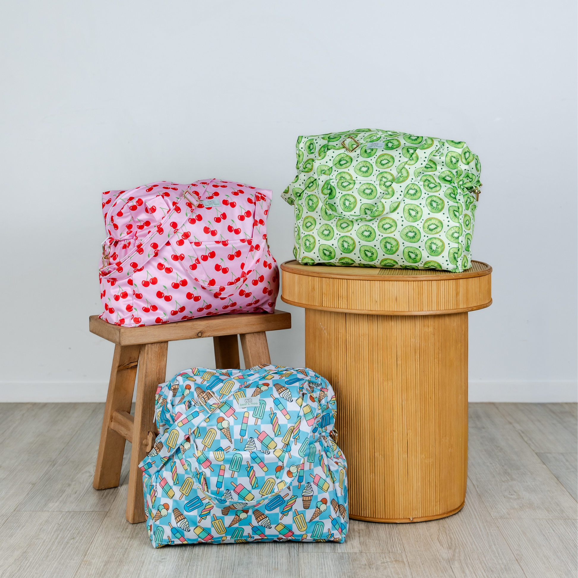 As an all in one bag, there are no internal pockets, so reach for our Mini, Medium and Large Wet Bags to help you keep everything separated and sorted.