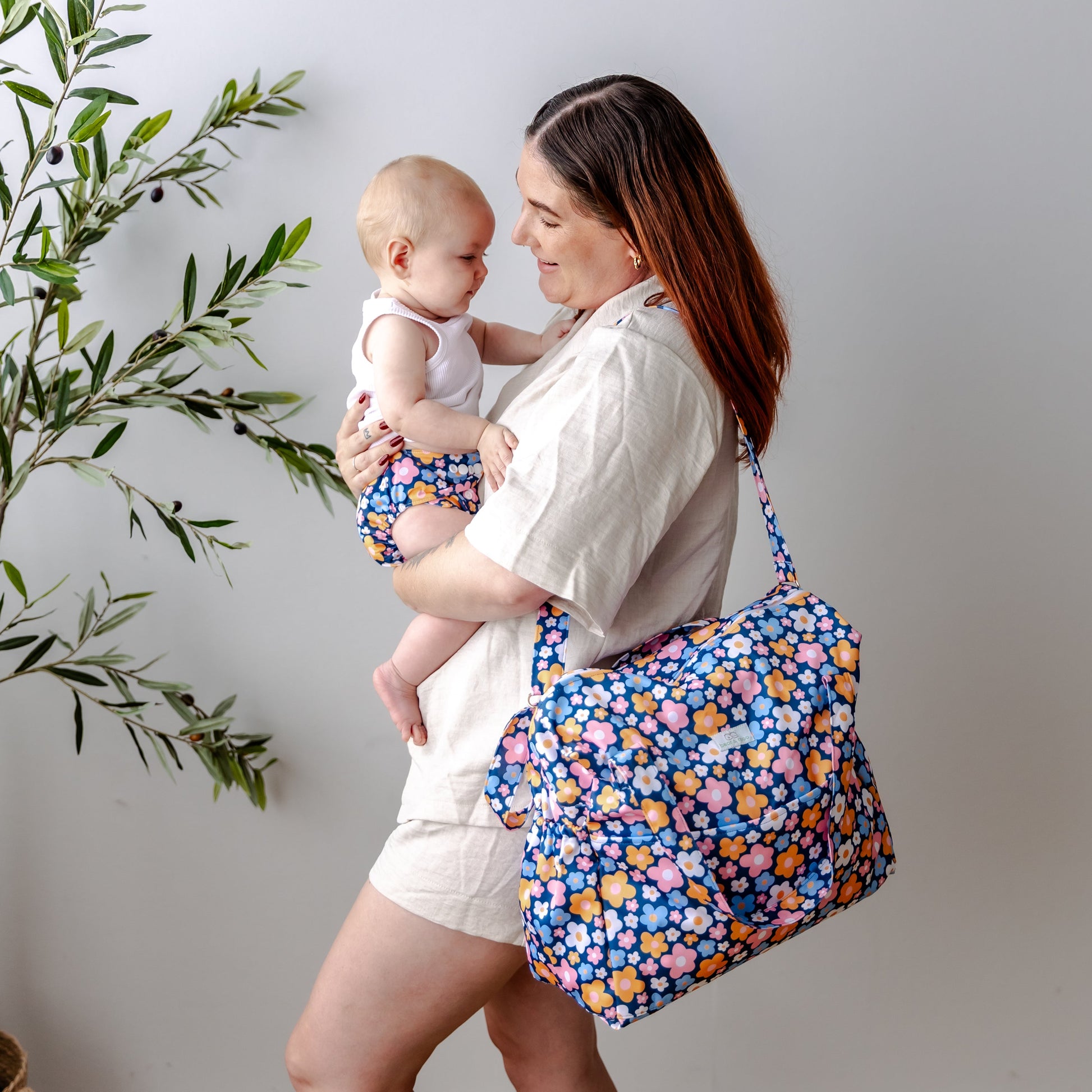 The Bear & Moo Day Bag is here to help you pack your clothes, nappies, togs, lunch, life, with ease and full on reckless abandon.