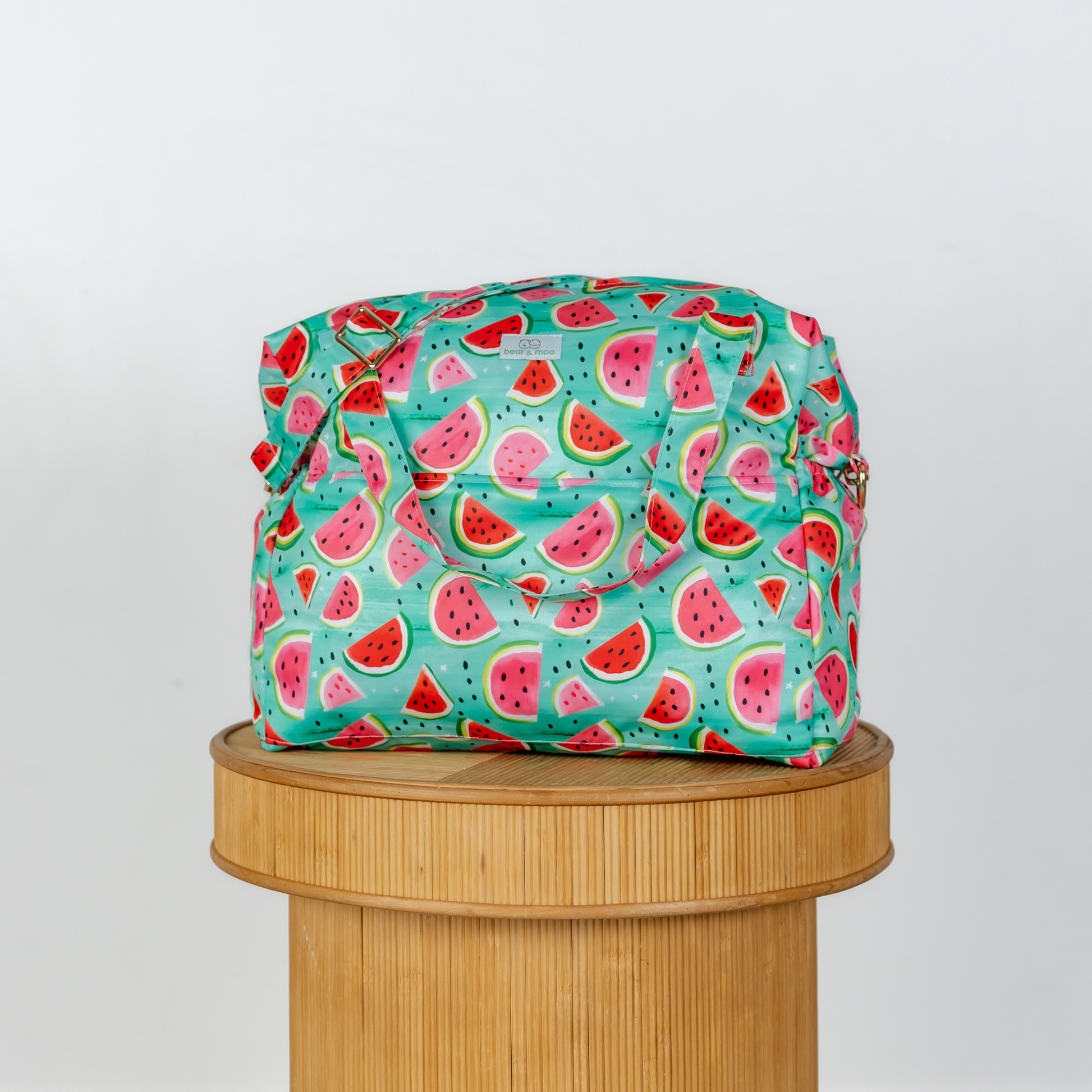 Our Day Bag is made with PUL material, meaning it's waterproof, baby bottle-spill proof, drink bottle leakage-proof, salad dressing-safe.