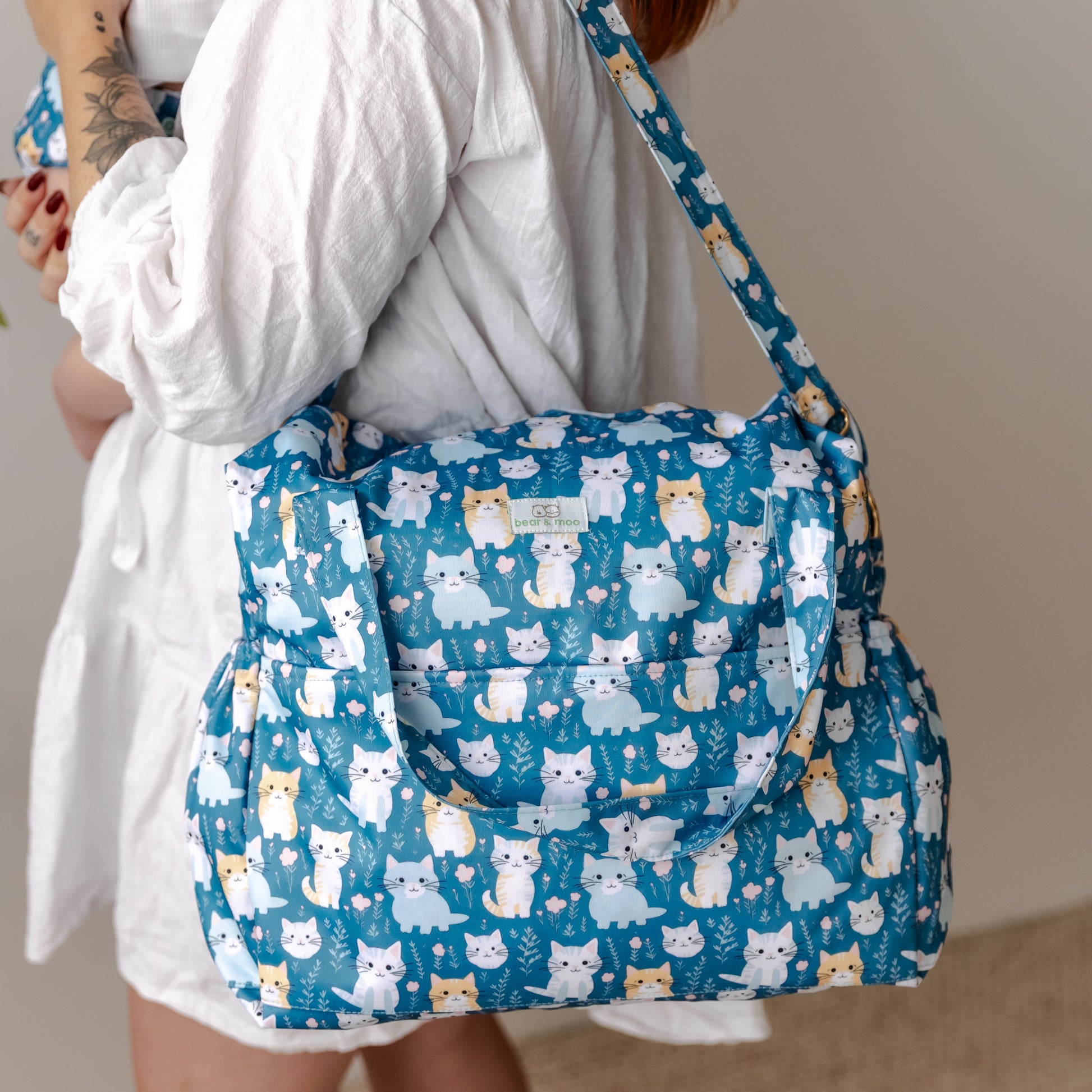 The Bear & Moo Day Bag is here to help you pack your clothes, nappies, togs, lunch, life, with ease and full on reckless abandon.