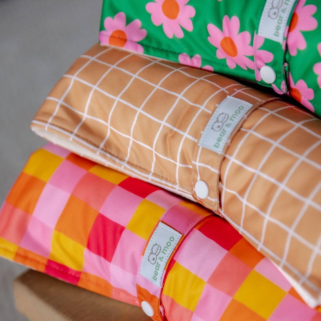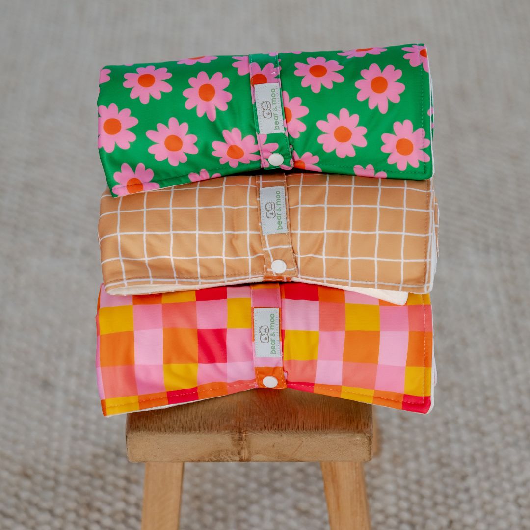 Bear & Moo dual purpose, soft bamboo velour lined Reusable Change Mats are perfect for in your Nappy Pod or baby bag, and create a versatile, comfortable place to change your baby.