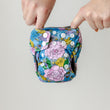 With a Newborn nappy, all the absorbency is built in. There are no inserts, no stuffing of pockets, but also no way to add extra absorbency. They come with a dome in the centre to keep the nappy out of the way of the umbilical cord in those first few days.
