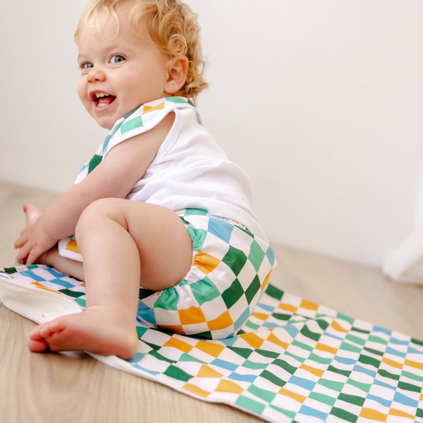Our Retro Checkerboard print is available in our range of reusable products. You can shop the Retro Checkerboard collection here.