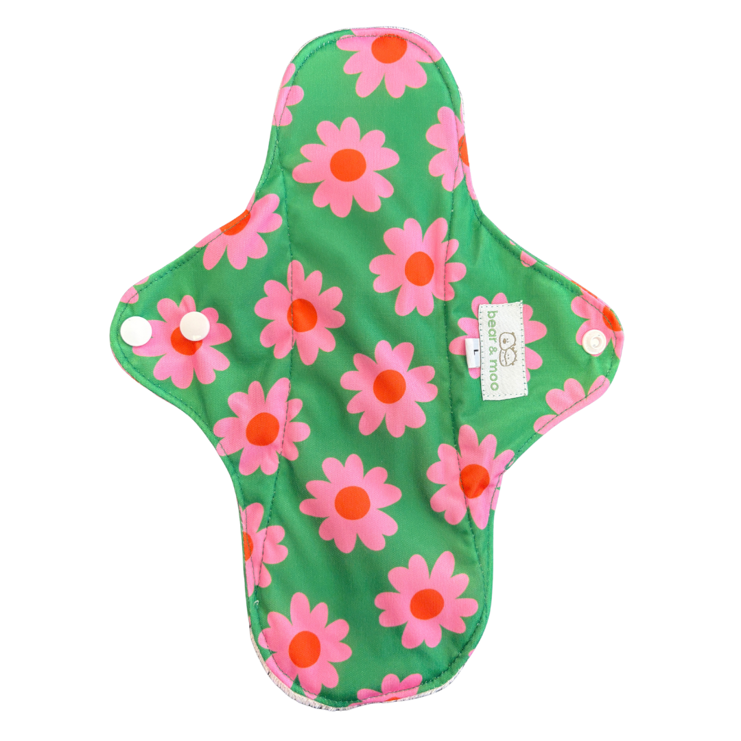 Our sanitary pads are specially made using waterproof PUL with a layer of bamboo cotton and a layer of microfibre inside and a bamboo velour top for comfort.