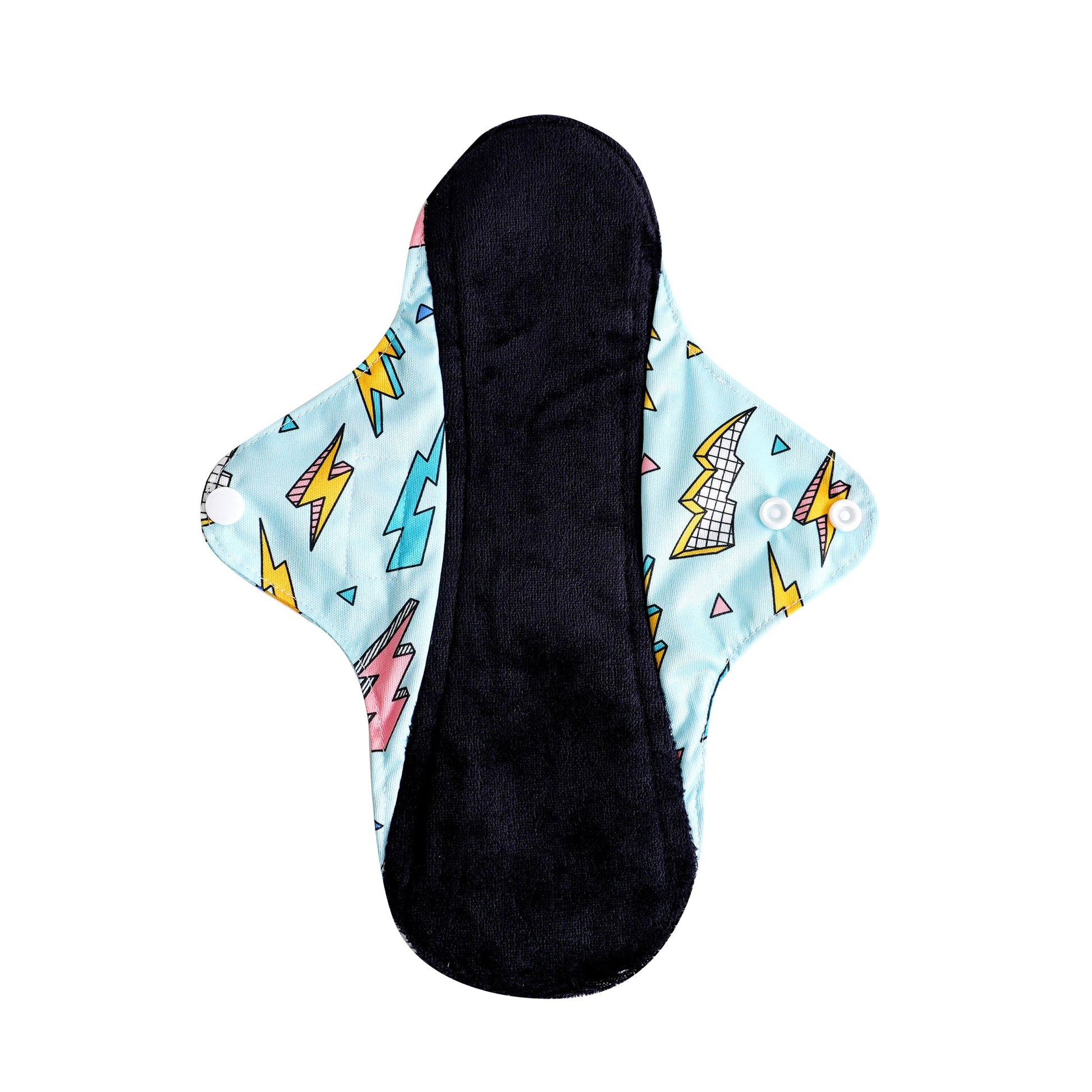 Our sanitary pads are specially made using waterproof PUL with a layer of bamboo cotton and a layer of microfibre inside and a bamboo velour top for comfort.
