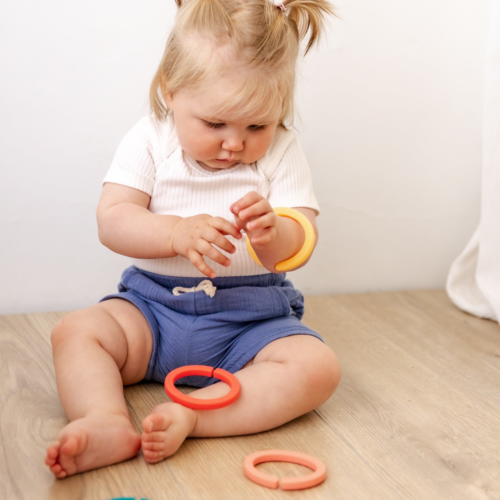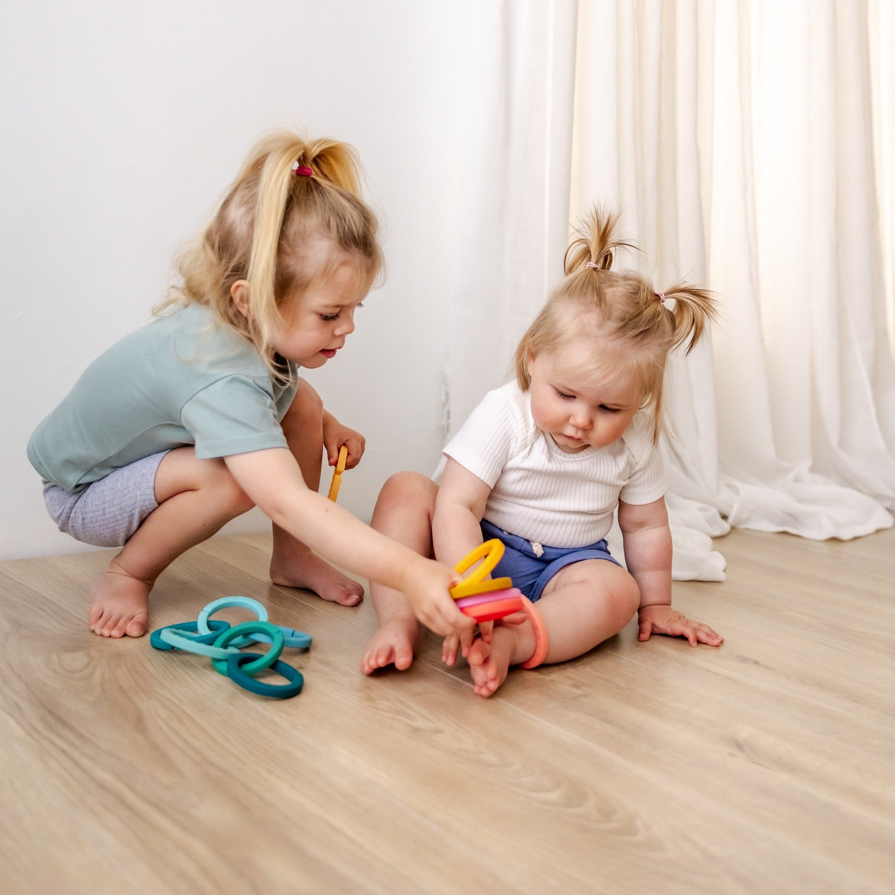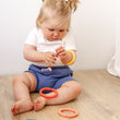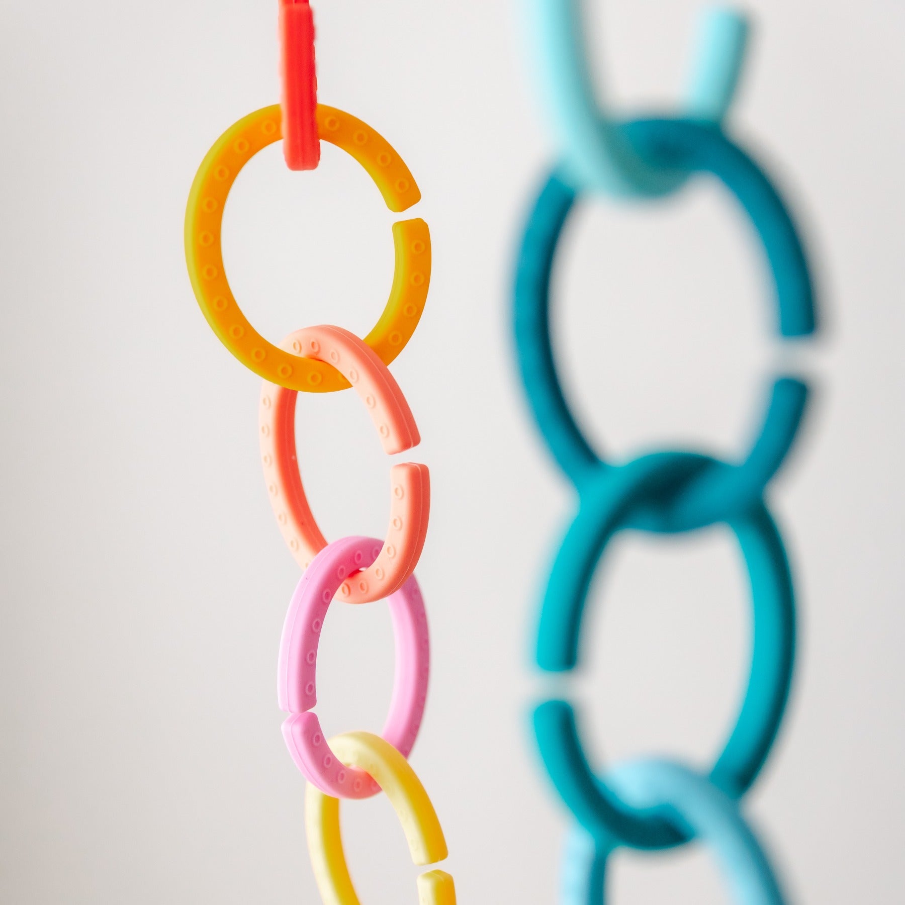 Get ready to soothe those sore gums with our Silicone Teething Links! These links, available in shades of blue (Ocean) and orange (Sun), will keep your little one entertained while providing relief for their teething pain. A perfect combination for your little teether!