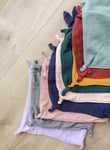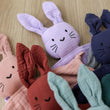These beautiful bunny's have a square of approx. 30cm x 30cm and come packaged in a matching cotton muslin drawstring bag, making them a perfect gift.