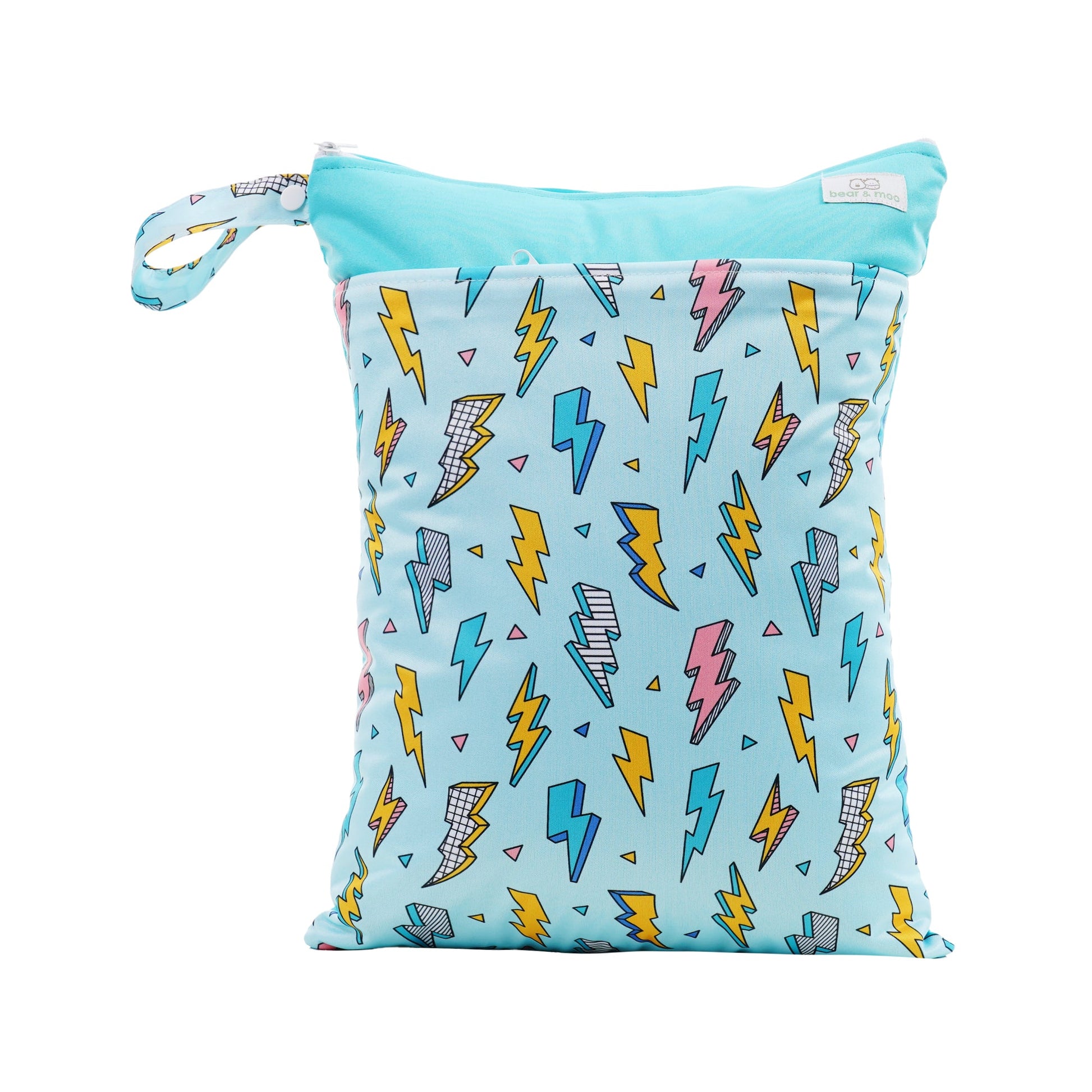 - Bear & Moo Large Wet Bags have a double zipper with two pockets to allow one pocket for dry items and one for wet