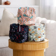 Measuring 27 long x 18 wide x 17cm high, Nappy Pods are made from the same material as our Wet Bags, meaning they are not structured and are collapsible.