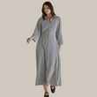 The Crinkle Dress offers a chic, comfortable option for both casual and dressy occasions. With its classic collar, button-up front, set-in sleeves, and cuff detailing, this dress combines timeless elegance with relaxed styling, making it a versatile addition to your wardrobe.