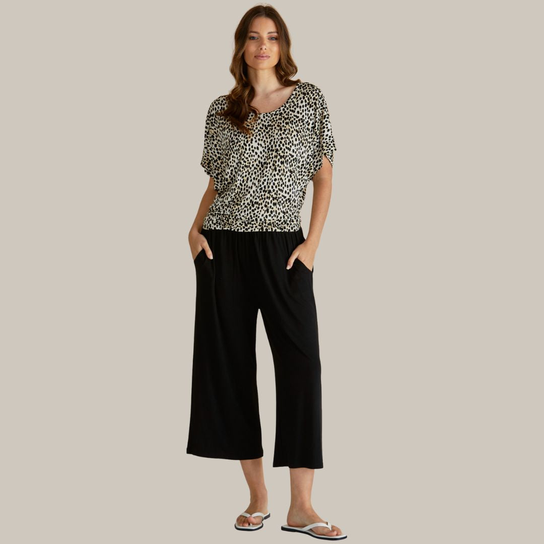 Experience ultimate comfort with the Crystal Crop Jogger. Made from soft stretch bamboo jersey, these Betty Basics joggers feature a wide palazzo leg and flat waistband for a relaxed yet elevated everyday style.