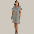 The Elise V-Neck Rib Dress is crafted for a relaxed fit with cap cuff sleeves and side splits. Its classic V-neckline and pockets create an elevated, comfortable silhouette. Perfect for effortless transeasonal elegance with a touch of sophistication.