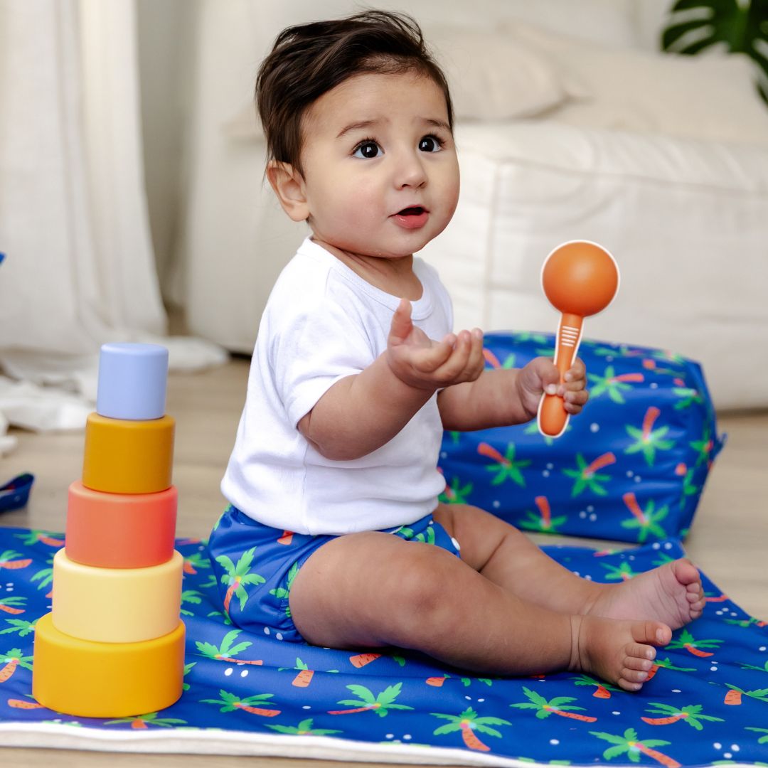 The beautiful printed side is made from waterproof PUL, meaning you can use this change mat as a play mat as well.